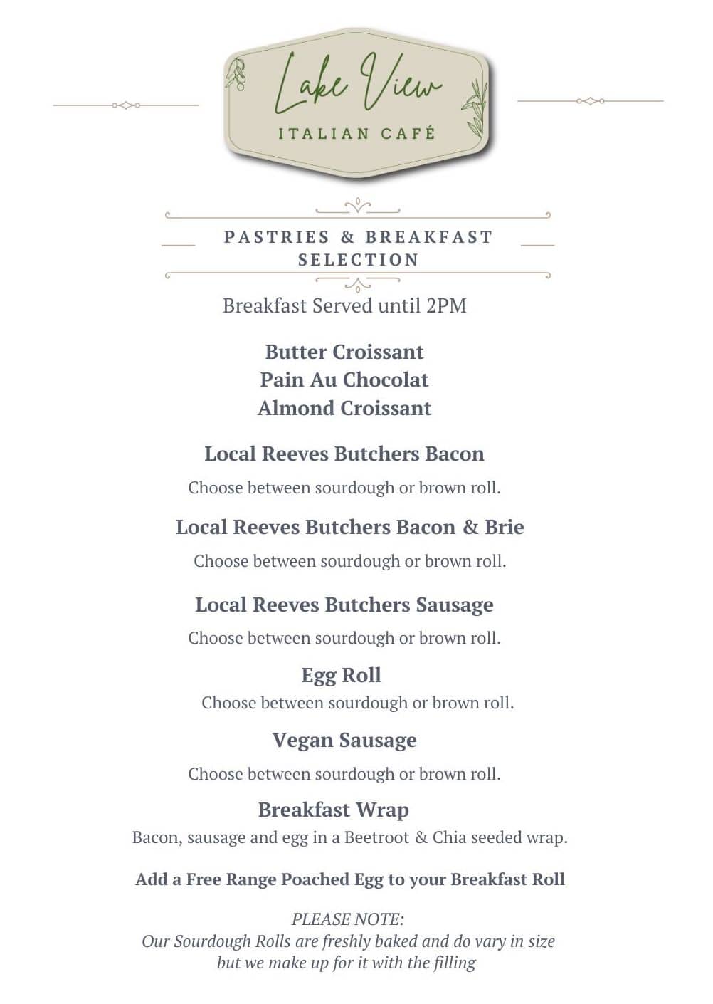 Breakfast rolls served to 2pm